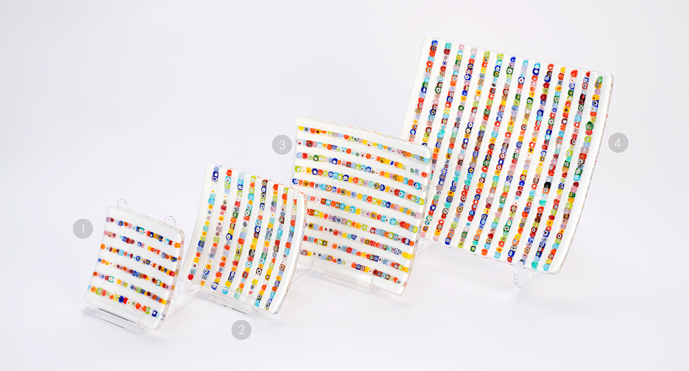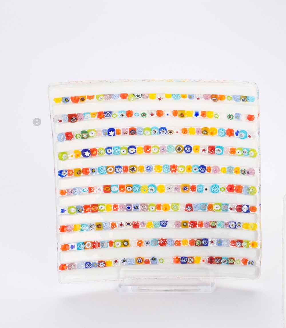İtalyanca bin ve çiçek sözcüklerinin birleştirilmesi ile ortaya çıkan Millefiori tarzı cam teknikleri, ilk olarak Gallo-Romen çağlarda uygulanmış, 15. ve 16. yüzyıllarda ise Venedikliler tarafından Murano adasında geliştirilmiştir. Millefiori tekniği Cam İşleme Sanatı’nda mükemmeliyeti simgeleyen özgün tarzlar arasında yer alır. Şeffaf Murano cam üzerine dizilen opak cam şeritlerin arasına tek tek cımbızla yerleştirilen Murano el işi cam çiçeklerin, 760-780 C° ‘de 12 saat süre ile özel fırında pişirilmesi ile hayat bulur.